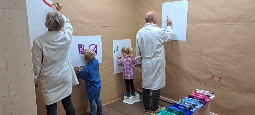 Du ziehst deinen Malerkittel an, nimmst dir ein Blatt Papier und suchst dir einen Platz an der Wand.